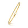 Five 14k white gold stations of bead set diamond glitter across the front of this stylish basket weave bracelet. The textured pattern on 14k yellow gold imparts an attractive appearance while the large lobster clasp keeps the bracelet secure featuring.13 cttw of diamonds. The bracelet is available in 7 1/4 inches.