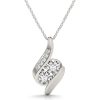 Delicate cable chains are attached to the top and bottom sections of a minimalist and flat crucifix element. This necklace radiates faith and is designed in 14k white gold. It comes in size 18 inches.