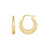Stunning diamond cut texture detailing highlights the charming style of these puffed heart post earrings. Made of 14k yellow tone gold, these secured with push backs.